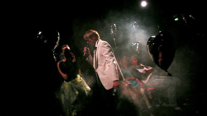 "Ausstatterin Ines Alda hat die Trennung von Bühne und Zuschauerraum aufgehoben und 50 rollbare Drehstühle in schreiendem Pink über den Saal verteilt, dazwischen schwingen silbrig schimmernde Luftballonherzen an hauchdünnen Bändern und geben jedem Luftzug nach. In diesem preiswürdig kitschigen Ambiente agieren Immanuel Humm und Eva Krautwig in wechselnden Rollen und mit sichtbarem Spaß am Spiel. Kreuz und quer bahnen sie sich ihren Weg durch die Zuschauerschar und präsentieren eine Show, die es in sich hat." Schleswig-Holsteinische Landeszeitung